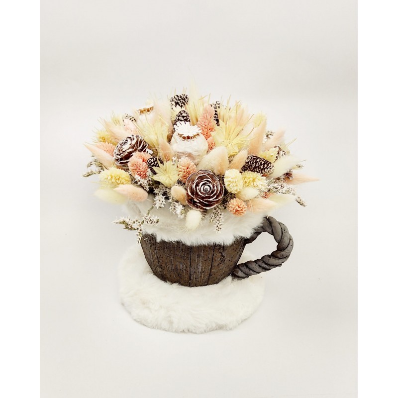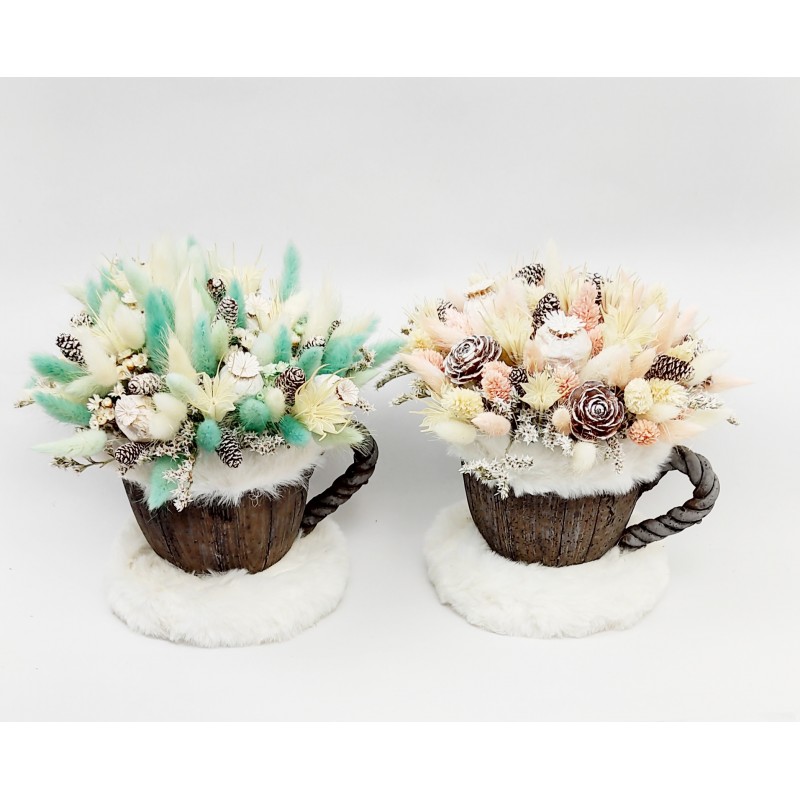 Aranjamentul este realizat in canita din flori uscate și stabilizate. Dimensiuni:H20cm , D18cm. Canita este imbracata cu blanita. Sunt realizate in mai multe culori. Canita este de ceramica cu aspect de lemn.Este un cadou deosebit pentru orice ocazie.A nu se tine direct in razele solare.