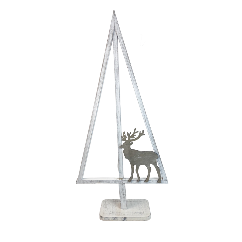 Adaugă un accent unic și elegant sărbătorilor cu bradul stilizat din lemn cu ren, având dimensiunile de 72 cm înălțime și 34 cm lățime. Cu un design rustic și modern în același timp, acest ornament este perfect pentru living, hol, vitrine sau spații comerciale. Stabil și durabil, bradul devine elementul central al decorului de Crăciun, aducând un aer cald, natural și rafinat în orice încăpere.