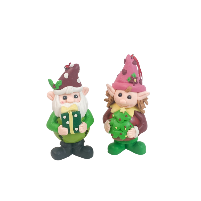Adaugă un strop de magie autentică sărbătorilor de iarnă cu această figurină lucrată manual din pastă polimerică (Fimo). Cu o înălțime de 12 cm, acest personaj vesel de Crăciun ține în brațe un brăduț decorativ, fiind plin de detalii simpatice – fular, căciulă, zâmbet cald și culori tradiționale.